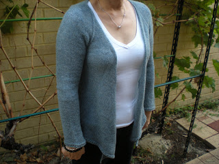 While knitting the cardigan, I was not happy with the rolling edges & was concerned with them as there is no finishing to the edges. I kept putting it down to contemplate if I should continue or rip it out. This went on for a couple of months but I kept knitting. When I got to the bottom of the cardigan, I cast off but it rolled so much that I can't bear looking at it. I ripped off the cast off & left the cardigan in the basket.